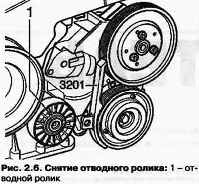 Зніміце рэмень шкіў крыльчатой помпы гідраўзмацняльніка.