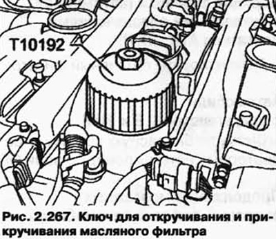 Адкручвайце і закручвайце з дапамогай ключа для алейнага фільтра Т10192 (мал. 2.267).