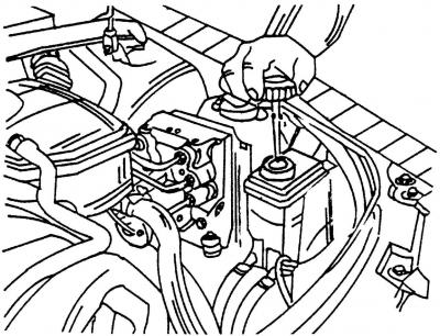 Fig. 267. Remove the power steering reservoir cap and check the hydraulic fluid level with a dipstick (the dipstick is located on the cover)