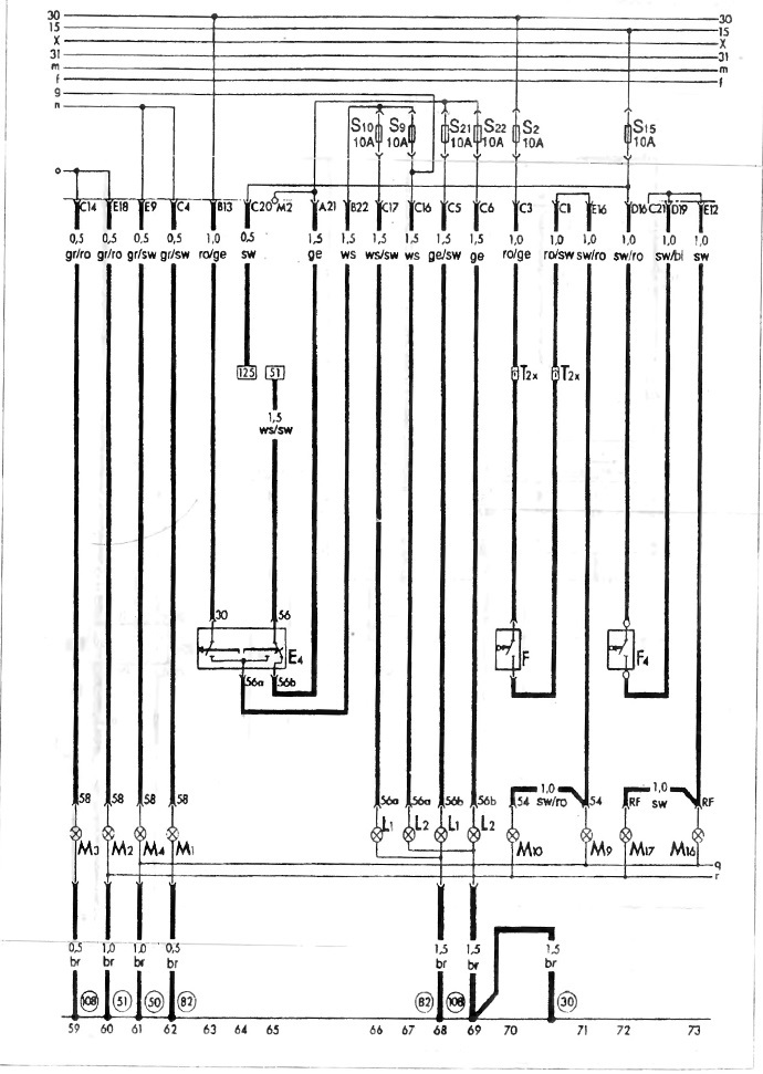 Статья о ремонте автомобилей Фольксваген Гольф 1984-1993: Главное освещение, задний свет, переключатель сигнала вспышки фар, выключатель стоп-огней и переключатель света заднего хода (модели с 08.87 г.) https://www.vwmanual.ru/golf/2/electrics/schemes/glavnoe-osveschenie-zadniy-svet-pereklyuchatel-signala-vspyshki-far-vy