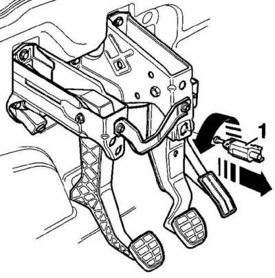 3. Поверните выключатель стоп-сигнала (1) на 90° против часовой стрелки и извлеките его из кронштейна.
