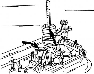 A szeleprugó lemezei két csavarhúzóval is összenyomhatók. Ebben az esetben tegyen egy rongyot a hengerfej égésterébe, hogy megakadályozza a szelep leesését.