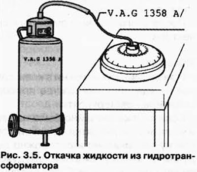 A VAG 1358 A olajszivattyúval és a VAG 1358 A olajszivattyúval (3.5. ábra) szivattyúzza ki az ATF olajat a nyomatékváltóból.