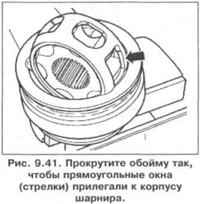 6. Вставьте сегмент ступицы под углом в окно обоймы (рис. 9.42).