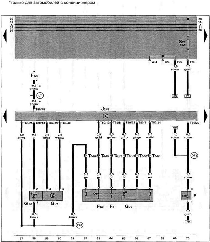 Блок управления системой непосредственного впрыска дизельного топлива, выключатель стоп-сигналов, датчик температуры во впускном коллекторе, датчик положения педали акселератора, выключатель "kick-down", выключатель холостого хода.