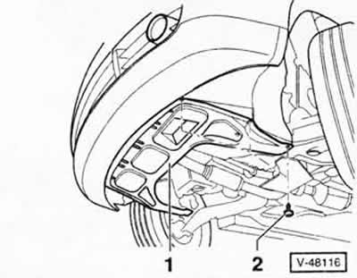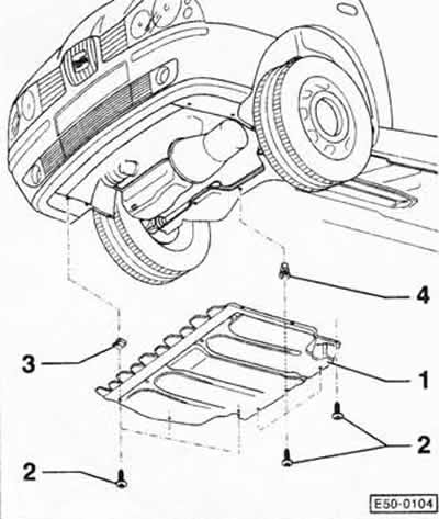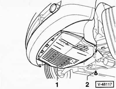 Нижний кожух моторного отсека «1» вытащить назад и снять.