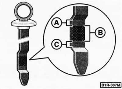 Внимание: Если в двигатель было налито слишком много масла (выше зоны -А-), его излишки необходимо отсосать, иначе могут быть повреждены сальники двигателя и каталитический нейтрализатор.