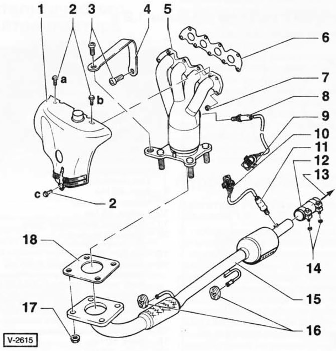 15 — передняя выпускная труба с каталитическим нейтрализатором