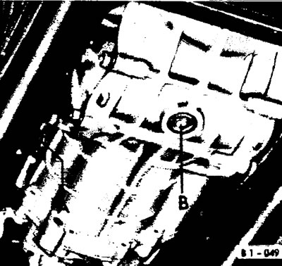 Проверка уровня масла в коробке передач и картере главной передачи должна проводиться через каждые 20.000 км пробега. Заливка масла и проверка его уровня осуществляются через заливное отверстие А на коробке передач. На горизонтально стоящем автомобиле уровень масла должен совпадать с нижним краем резьбы заливного отверстия.