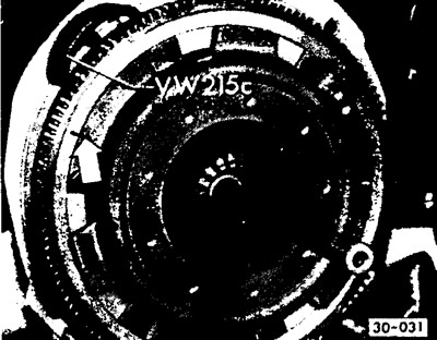 В мастерской можно также проверить биение ведомого диска сцепления. Это проверка необходима только в том случае, если сцепление планируется устанавливать снова, а до этого оно работало ненадлежащим образом. Торцевое биение ведомого диска не должно превышать 0,5 мм.