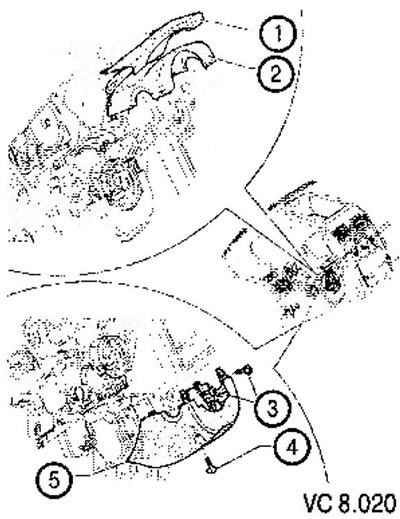 Разблокировать фиксаторы и снять нижнюю облицовку блока подрулевых переключателей (5).