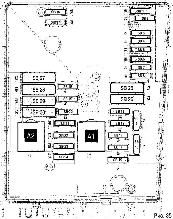 2. Предохранители (SB) в коммутационном блоке, в моторном отсеке слеза