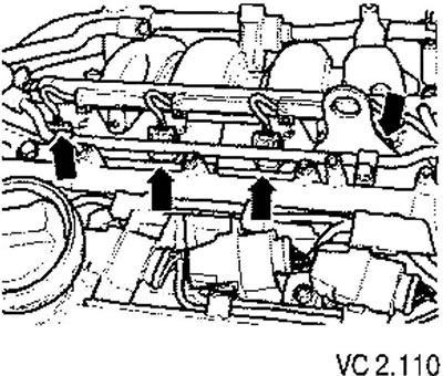 - Отвинтить топливную рампу от впускного коллектора.