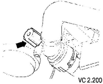 Отсоединить также шланг системы охлаждения от теплообменника ОЖ - масло (стрелка) и слить остатки охлаждающей жидкости.