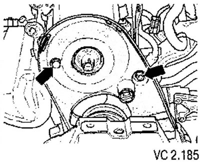 11. Отвернуть болты крепления заднего кожуха привода ГРМ (стрелки).