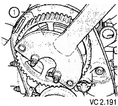 13. Установить зубчатый шкив распределительного вала. При затягивании винта крепления зубчатого шкива необходимо удерживать шкив распределительного вала с помощью рычага.
