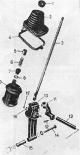 Механизм переключения передач (4 скорости) — регулировка 1. Включите вторую передачу. 2. Ослабьте сквозной болт на зажиме на рычаге переключения передач. 3. Продвиньте рычаг переключения передач до тек пор, пока зазор между рычагом и...