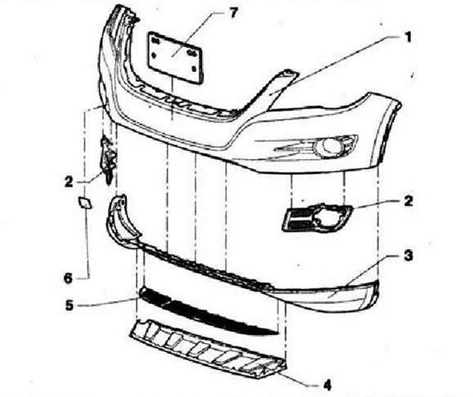 - 3 - Spoiler, material - PC/ABS, atașat cu cleme de ornamentul barei de protecție, îndepărtat numai după îndepărtarea ornamentului barei de protecție "1"