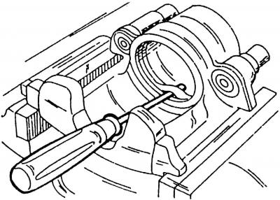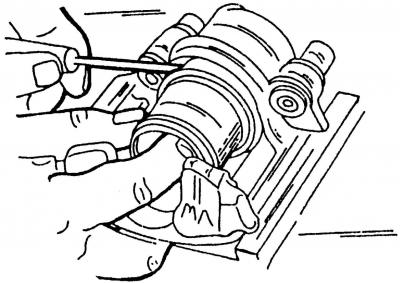 Рис. 319. Снятие уплотнительного кольца тормозного цилиндра