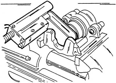 Рис. 321. Вдавливание поршня в тормозной цилиндр при помощи струбцины