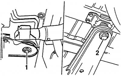 - присоедините заднюю подвеску (рис. 302). Затяните центральный болт моментом 170 Н·м, два оставшихся болта затяните моментом 110 Н·м;