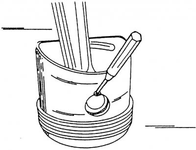 Выбейте поршни и шатуны рукояткой пластмассового молотка изнутри блока цилиндров наружу. В случае необходимости соскоблите скребком масляный нагар на верхней части цилиндра, однако будьте осторожны, чтобы не повредить при этом поверхность цилиндра.