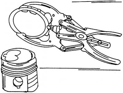 Рис. 426. Схематическое изображение снятия или установки поршневых колец