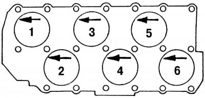 - нарисуйте стрелку (рис. 54) на дне поршня, указывающую на переднюю часть двигателя;