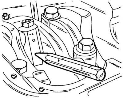 - снимите крышки шатунов и вкладыши и выбейте детали. В случае необходимости соскоблите скребком масляный нагар на верхней части цилиндра. Для этого немного поверните коленчатый вал, чтобы опустить поршень глубже в отверстие цилиндра. Будьте осторожны, чтобы скребком не поцарапать цилиндр;