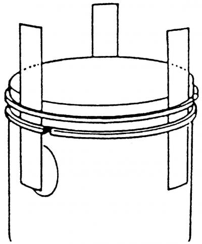 Рис. 59. Снятие поршневого кольца с помощью металлических полосок