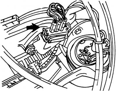 - отсоедините штекерную колодку (рис. 216, показано стрелкой) датчика Холла;