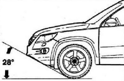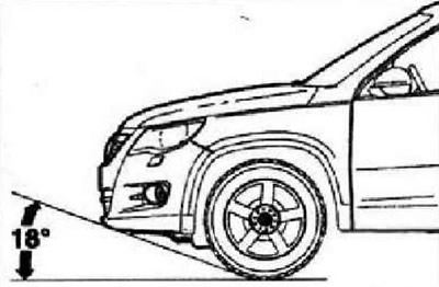 Tiguan выпускается с двумя вариантами облицовки бампера. Облицовка бампера в исполнении для города рассчитана на угол свеса 18°.
