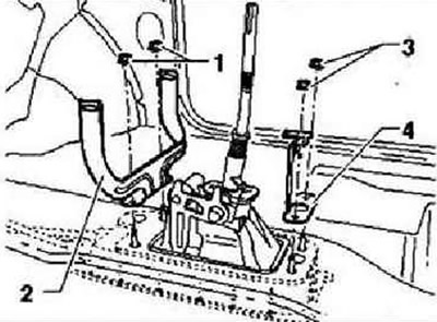 Снять инвертор с розеткой, 12 В-230 В «U13». Снять заднюю панель центральной консоли. Снять центральную консоль с центральным подлокотником. Открутить две гайки «1» (8 Нм) и снять кронштейн «2». Открутить две гайки «3» (8 Нм) и снять кронштейн «4».