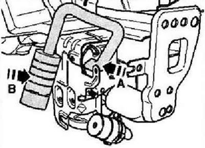 Надеть глушитель на впуске на отопитель движением по направлению «стрелки А» закрепить его на кронштейне движением по направлению «стрелки В».