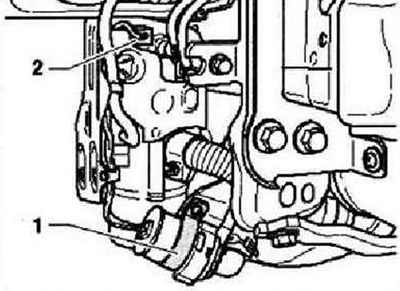Ослабить хомут циркуляционного насоса «V55» «1». Отсоединить разъём от циркуляционного насоса «V55» «2».
