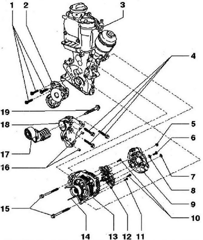 - 18 - Кронштейн дополнительных агрегатов для натяжного элемента и компрессора климатической установки