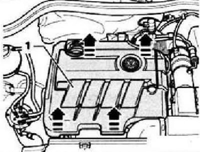 Отсоединить АКБ. Движением вверх снять кожух двигателя «стрелки».