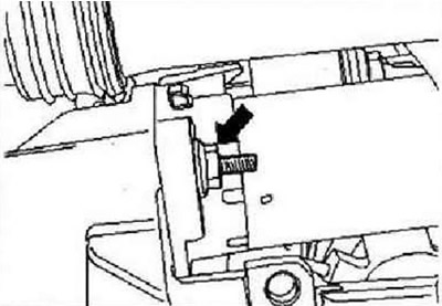 Выкрутить верхний болт крепления стартера «стрелка». Движением вверх извлечь стартер из автомобиля.