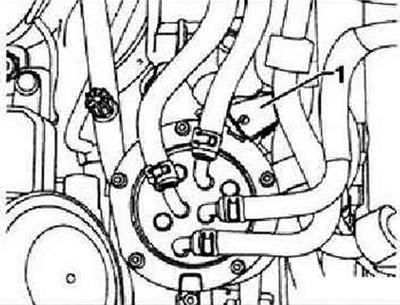 Отсоединить держатель шланга ОЖ «1», отжав его в сторону.