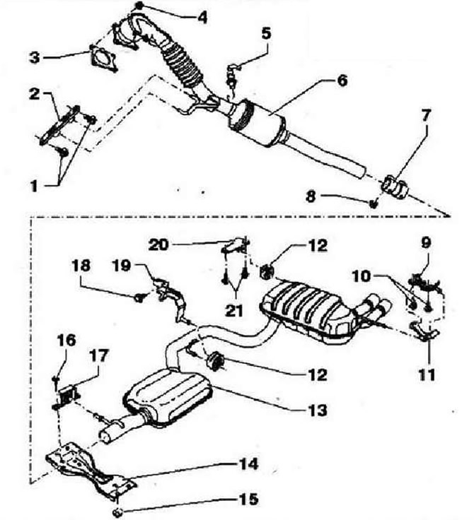 - 13 - Выхлопная труба со средним и задним глушителями, изготавливается как единое целое с основным глушителем, при ремонте может заменяться отдельно