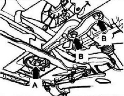 Снять качающую опору, сначала «А», затем «В».