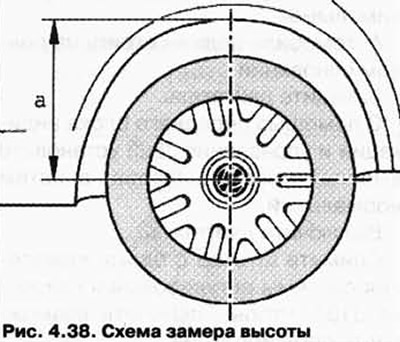 Замерьте высоту автомобиля у всех четырех колес (рис. 4.38).