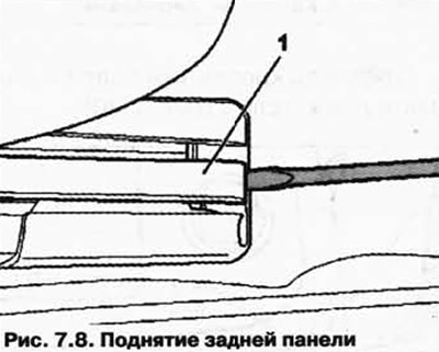 Аккуратно приподнимите панель 1 с помощью отвертки из задней облицовочной панели оси регулировки сиденья (рис. 7.8).