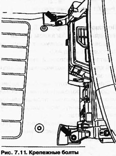 Снимите переднюю панель оси регулировки сиденья с салазок сиденья (рис. 7.7).