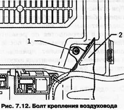 Выкрутите болт 1 и удалите воздуховод 2 (рис. 7.12).