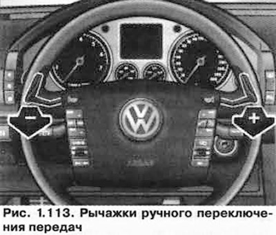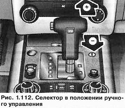 В позиции D сдвиньте селектор вправо для включения режима «Tiptronic» (рис. 1.112).