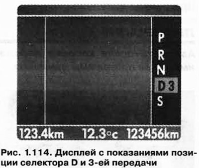 Позиция селектора показывается как сбоку от селектора, так и на дисплее приборного щитка (рис. 1.114).