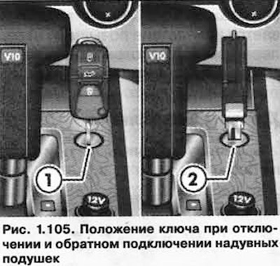Поверните ключом зажигания специальный выключатель в центральной консоли в положение, перпендикулярное к направлению движения (рис. 1.105).