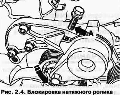 Подходящим гаечным ключом надавите на натяжной рычаг в направлении стрелки (рис. 2.4).
