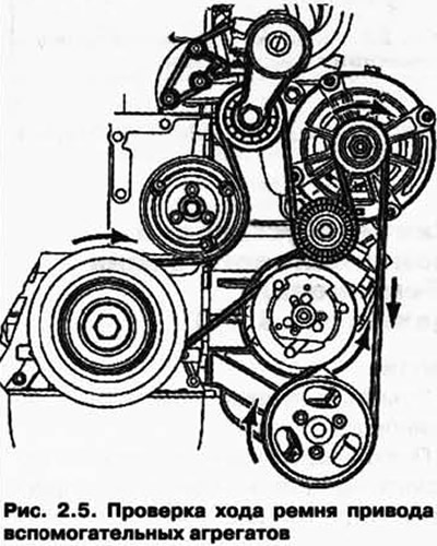 Заведите двигатель и проверьте ход ремня (рис. 2.5).